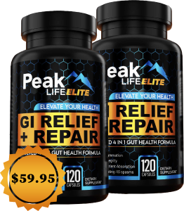 Peak Life Elite’s GI Relief + Repair Formula is a revolutionary supplement designed to support relief from many of the most common GI digestive symptoms while creating an environment that allows the body to begin healing.